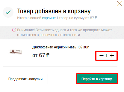 Что цена при выкупе товара в аптеке может отличаться от указанной на сайте.