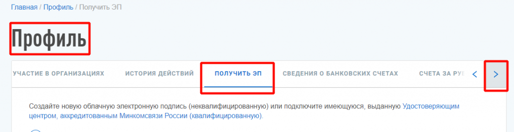 Для оформления налогового вычета потребуется электронная подпись, с помощью которой Вы сможете подписать документы онлайн. Кликните на свое имя на главной странице аккаунта. В разделе «Профиль» стрелочкой пролистайте до пункта «Получить ЭП».