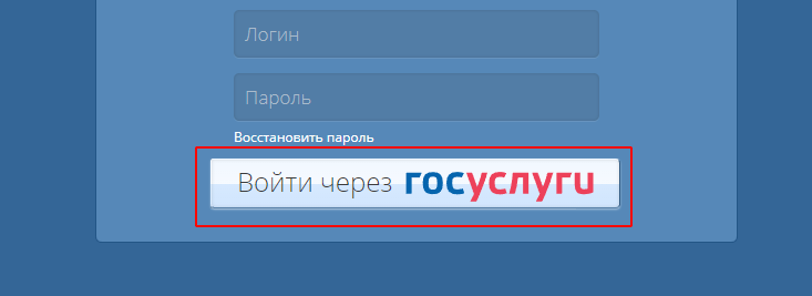 Чтобы авторизоваться на портале через “Госуслуги”, необходимо нажать на кнопку “Войти через Госуслуги”.