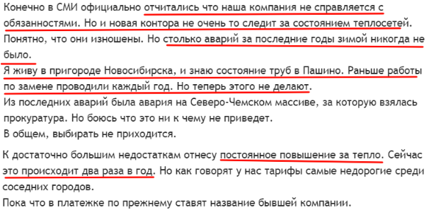 Пользователь под ником vibrocil решил изложить сухие факты об организации СГК, которая пришла к ним в Новосибирск в 2018 году, поглотив Сибэко. мужчина говорит о том, что раньше отчёты были прозрачными, повышение тарифов было незначительным и всего один раз в год. С приходом Сибирской генерирующей компании всё изменилось. Зимой в морозы город надолго и часто остаётся без горячей воды и отопления лишь потому, что летом не была произведена замена магистралей, а сотрудники делают плановые ремонтные работы в зимний период. Мобильное приложение работает некорректно и из-за этого пользоваться им крайне неудобно.