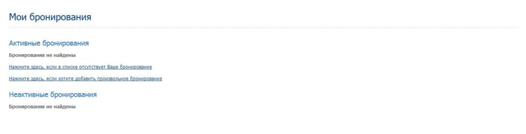 Позволяет просматривать как активные, так и не активные бронирования. Здесь можно найти необходимые бронирования по коду PNR, так и по фамилии. Код бронирования PNR – это автоматически присвоенный персональный номер бронирования.